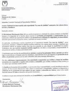 Santo Domingo, R.D. — El Movimiento Matrimonio Feliz manifestó preocupación por la realización y difusión del espectáculo “La Casa de Alofoke”, al considerar que su contenido contradice valores éticos y familiares. En una comunicación dirigida al Ministerio de Cultura y a la Comisión Nacional de Espectáculos Públicos, la entidad —con 33 años de labor en defensa de la familia— solicitó evaluar y adoptar medidas para regular o suspender segmentos que, a su juicio, afectan la formación moral y espiritual de la sociedad.